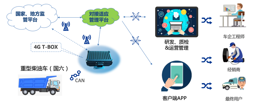車輛監(jiān)控平臺(tái)需滿足GB17691-2018的國(guó)六遠(yuǎn)程排放監(jiān)管系統(tǒng)架構(gòu);