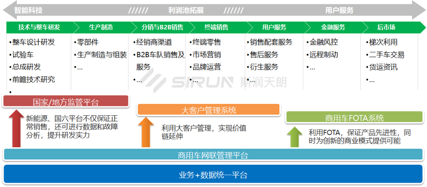 斯?jié)櫶炖蕿樯逃密嚻髽I(yè)客戶及車輛終端用戶提供一站式整體商用車管理平臺(tái)及應(yīng)用服務(wù)解決方案。商用車管理平臺(tái)能夠在滿足國(guó)家標(biāo)準(zhǔn)的基礎(chǔ)上,對(duì)商用車進(jìn)行車況及排放指標(biāo)的監(jiān)控,通過監(jiān)控服務(wù)平臺(tái)對(duì)數(shù)據(jù)進(jìn)行傳輸,并且具有快速接入、可擴(kuò)展性強(qiáng)、服務(wù)調(diào)度效率高、應(yīng)用生態(tài)完整以及能夠保障信息安全的特點(diǎn)。面向車企客戶和終端用戶提供豐富的服務(wù)產(chǎn)品,同時(shí)滿足商用車大客戶平臺(tái)及車隊(duì)?wèi)?yīng)用管理需求。